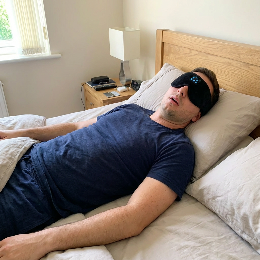 SlickFit is built for that exact moment. By blocking light completely and giving your mind something calm to focus on, it stops your brain from fully switching on — so you stay asleep and wake up clear again.