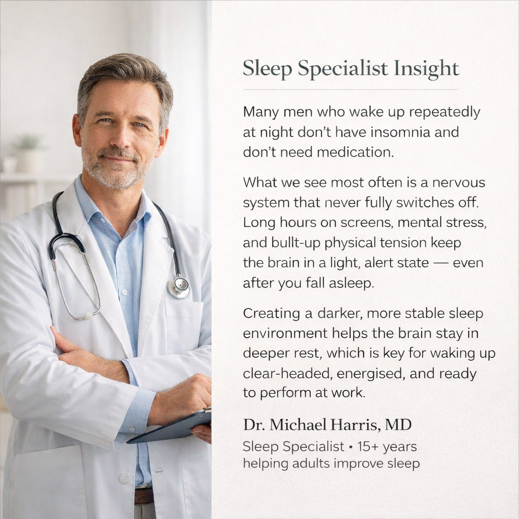 Most men who wake up at random times don't think anything will help anymore. You've tried going to bed earlier. Cutting caffeine, Drinking less, Supplements, Medicine,Sleep routine and Even just pushing through the day to try get some good sleep when you arrive home. When nothing sticks, you start to accept it this is just how your sleep is now.
